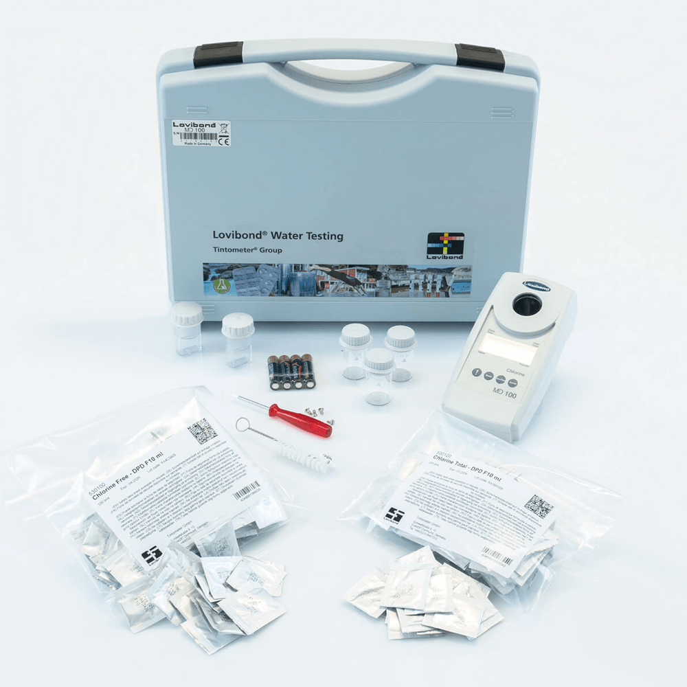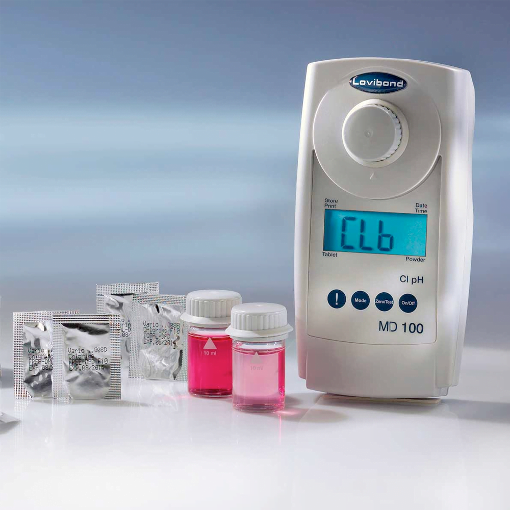 El MD 100 es un fotómetro uniparamétrico para el análisis de agua. Esta lÃnea de instrumentos de medición robustos y herméticos al agua destaca por su construcción compacta y es ideal para su uso en el laboratorio o en pruebas in situ. Uno de los parámetros de prueba de la calidad del agua más extendidos es el cloro. Con el MD 100 Cloro pueden verificarse parámetros de forma fiable en distintas industrias y aplicaciones. El equipo viene preprogramado con dos rangos de medición para el análisis del cloro libre, ligado y total. En ambos rangos de medición se emplean el método de DPD y los reactivos Powder Pack de Lovibond®.
