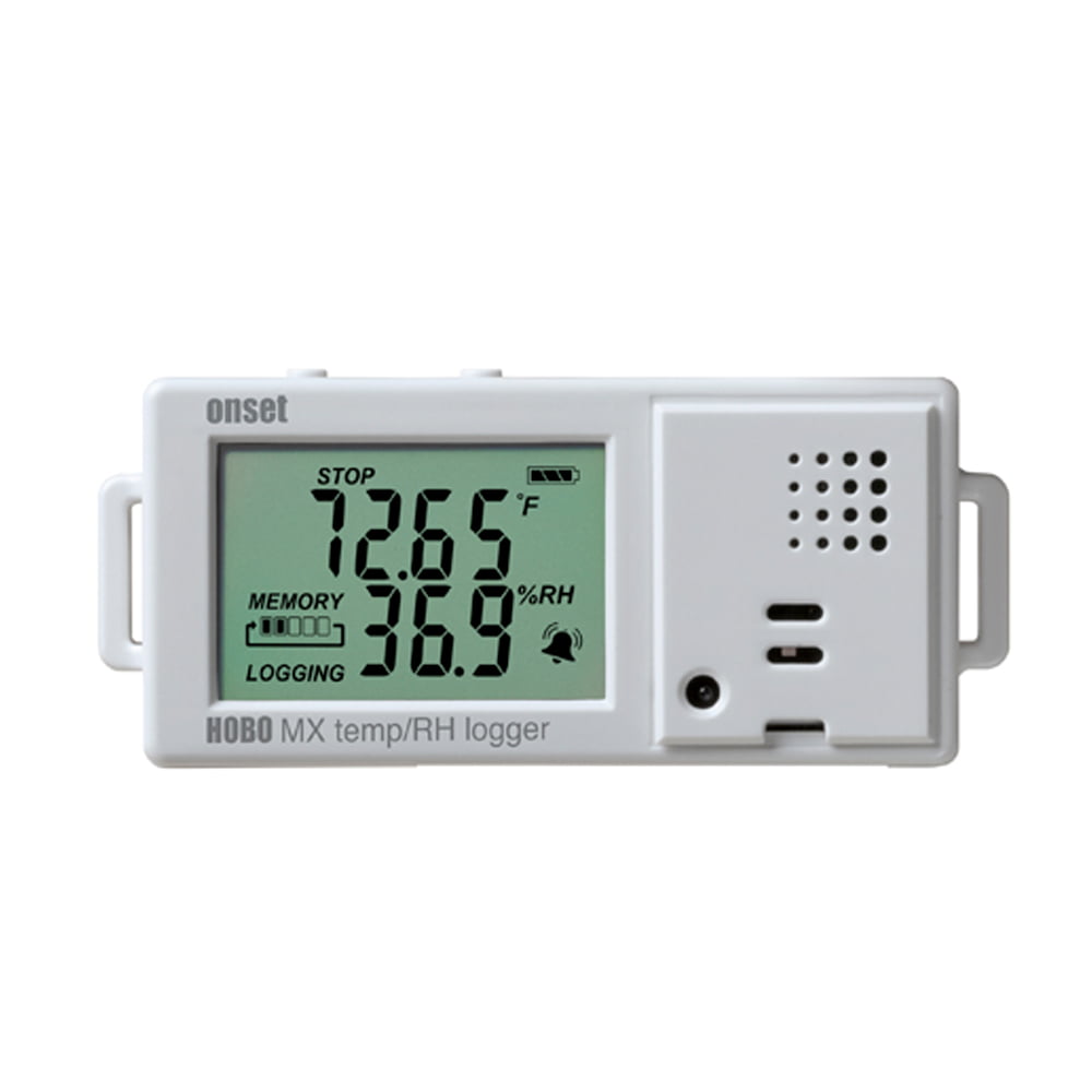 El registrador de datos HOBO MX1101 Temp/HR, utiliza sensores integrados para registrar la temperatura y/o la humedad relativa (HR) en ambientes interiores. Este registrador habilitado para Bluetooth de baja energía (BLE) está diseñado para la comunicación inalámbrica con un dispositivo móvil iOS o Android.