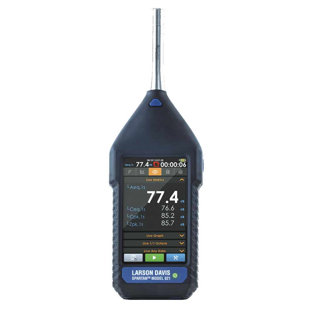 ¿Le preocupan los niveles de ruido potencialmente peligrosos en el lugar de trabajo? Los sonómetros Spartan Serie 821IH de Larson Davis, diseñados para profesionales de la salud y la seguridad en el trabajo, ofrecen todas las herramientas necesarias para medir el ruido y la exposición al ruido en el lugar de trabajo, incluidas métricas de dosis de ruido en el lugar de trabajo y ponderaciones de tiempo y frecuencia seleccionables. La función opcional de análisis de banda de octava (bandas de 1/1 y 1/3 de octava) proporciona datos que pueden ayudar a identificar la fuente de ruido y a seleccionar la protección auditiva. El software incluido proporciona informes de ruido a lo largo del tiempo, visualización de datos e informes de resultados racionalizados, además de la capacidad de exportar datos a una variedad de formatos.